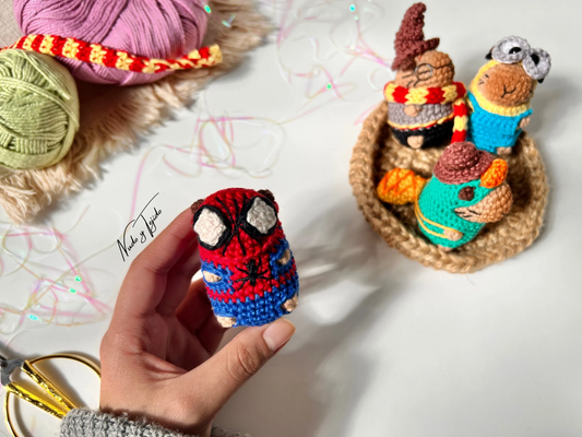 Kit Disfraces Personajes Icónicos Harry Potter, Perry el Ornitorrinco, Spiderman y Minion Patrón PDF Español, Portugués, Inglés por Nudo y Tejido